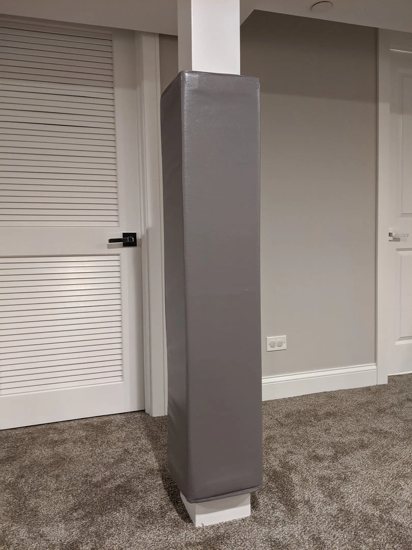 AK Athletic Equipment column pads arrives fully prepared for installation. There are adhesive fabric fastening strips on the INSIDE portion of the pad. To secure the pad to the column, simply peel the paper off to reveal sticky backing, adhere to column and close end flap.