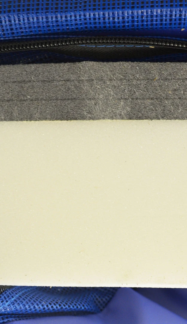 The foam core consists of 3.625″ thick, high density 70 pound compression polyurethane foam laminated to 1.375″ thick cross linked polyethylene foam. The foam provides firm cushioning to offer support for landings and falls.