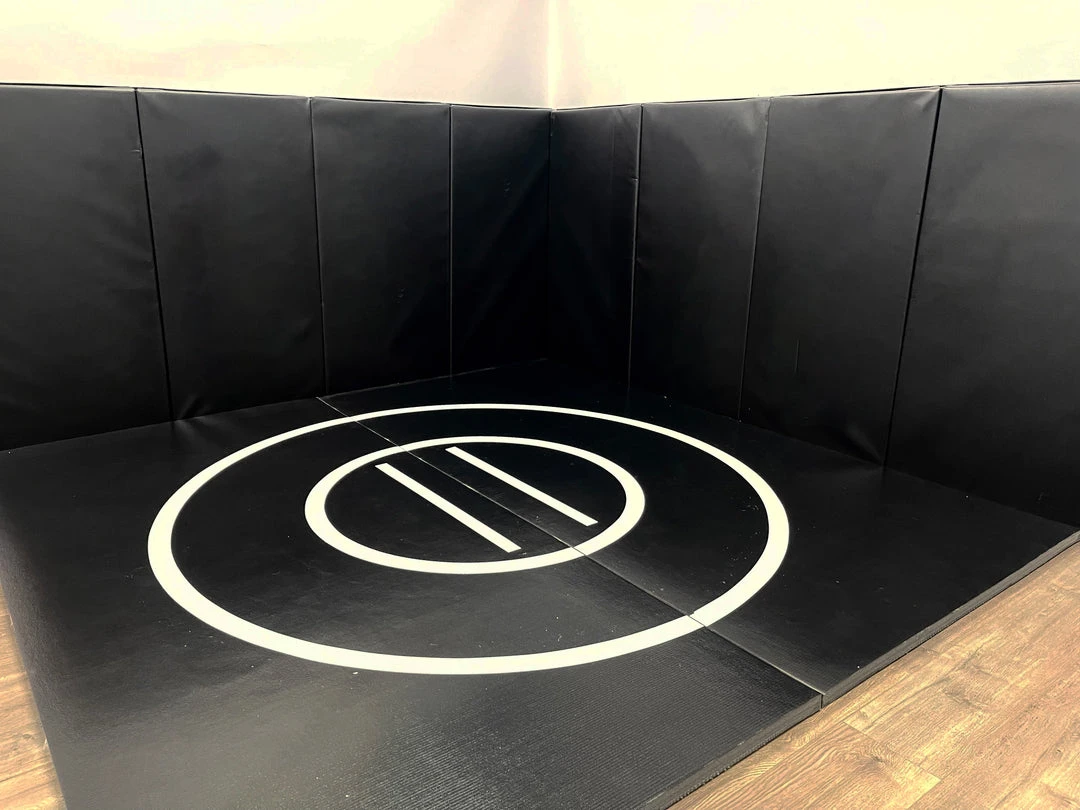 The removable folding wall pads are made from the same 13/8″ thick foam as the wrestling mats and can be placed on the floor to create a floor space of 8′ x 8′!