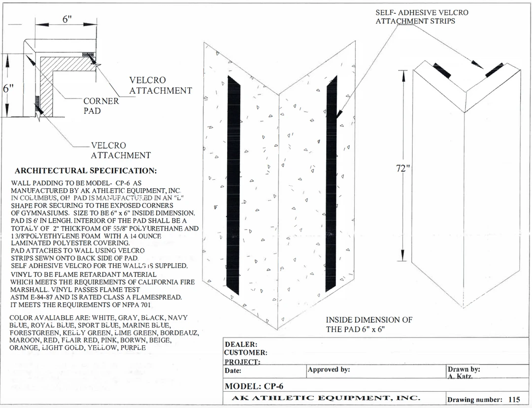 - Ensure safety in your gym or sports facility with AK Athletic Equipment Easy Stick Corner Pads. These 6′ tall, 6″ sided pads provide reliable protection against impacts and collisions.