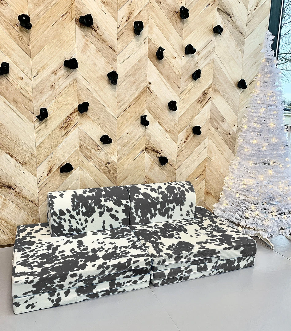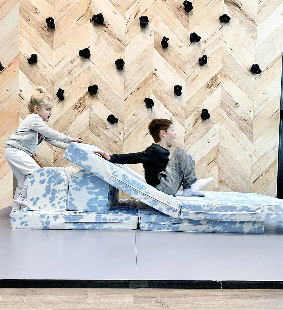 Let kids climb, build, and crash onto professional rock climbing landing mat foam in a modular play couch. Crash Couch is a stylish modular furniture play set where kids can read, jump, build, or relax. The Crash Couch is a four piece collection made in a Women-Owned family factory in Columbus, OH. Each component of our kids’ play couch is handpicked to create a perfect balance of stye and durability. Crash Couch is a play couch that is impact safe, and kid proof. We provide landing mats for professional athletes and performers nationwide and feel that your children deserve the same high quality and reliability. The polyurethane foam used in each Crash Couch soft play sofa is the same that we use in our commercial grade landing mats for gymnastics facilities, rock climbing clubs, and aerial arts gyms.